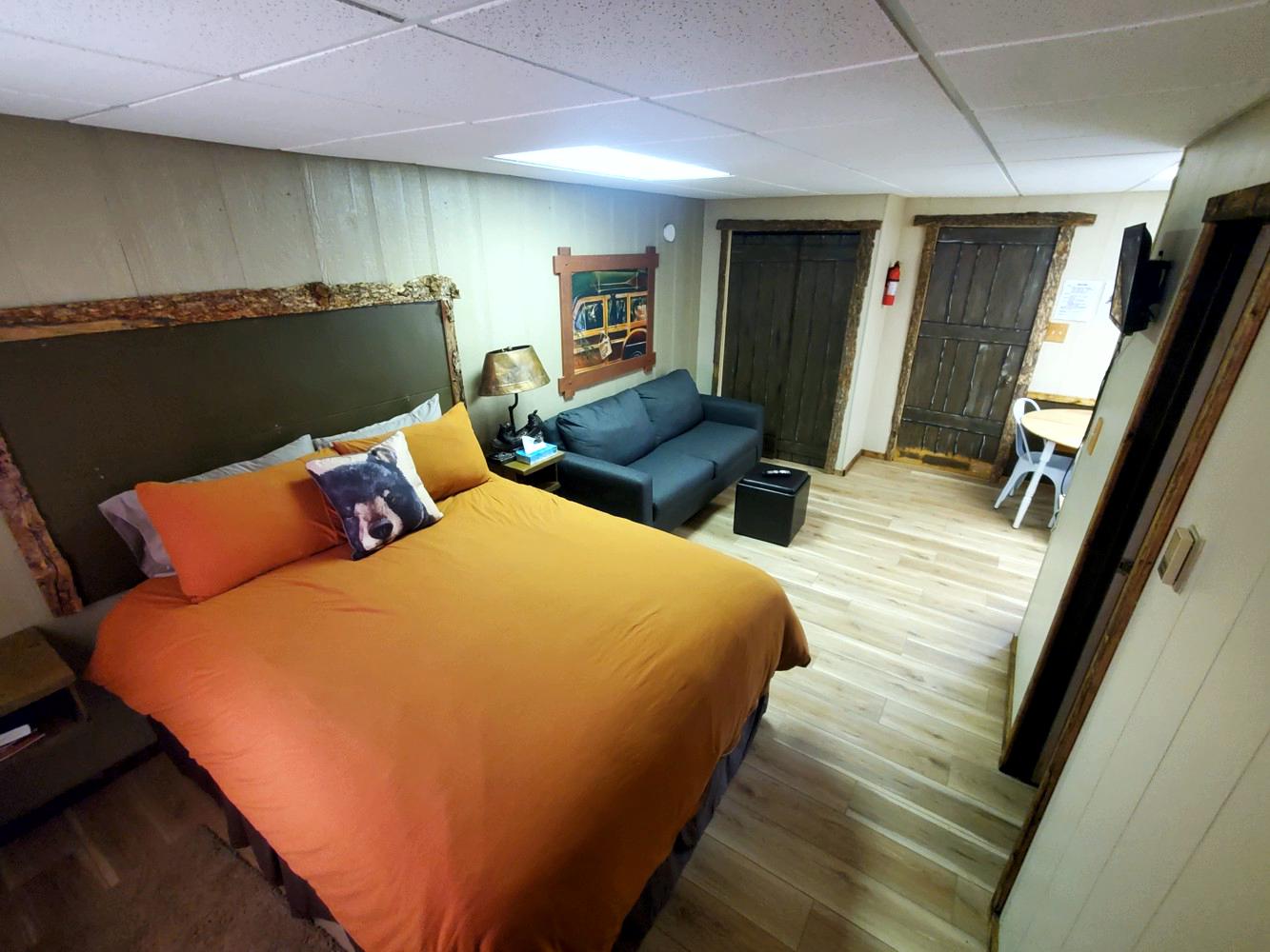 We are sorry, but no pets in the lodge rooms.